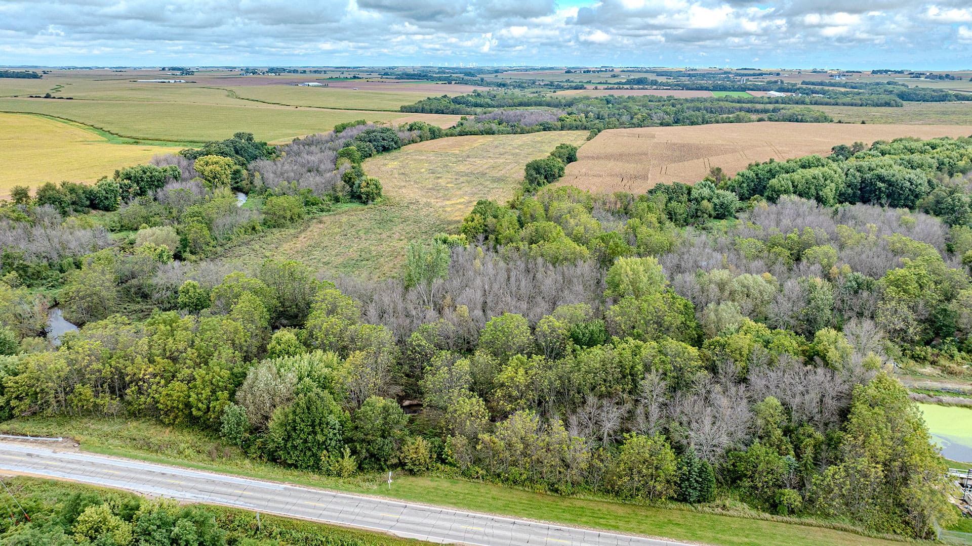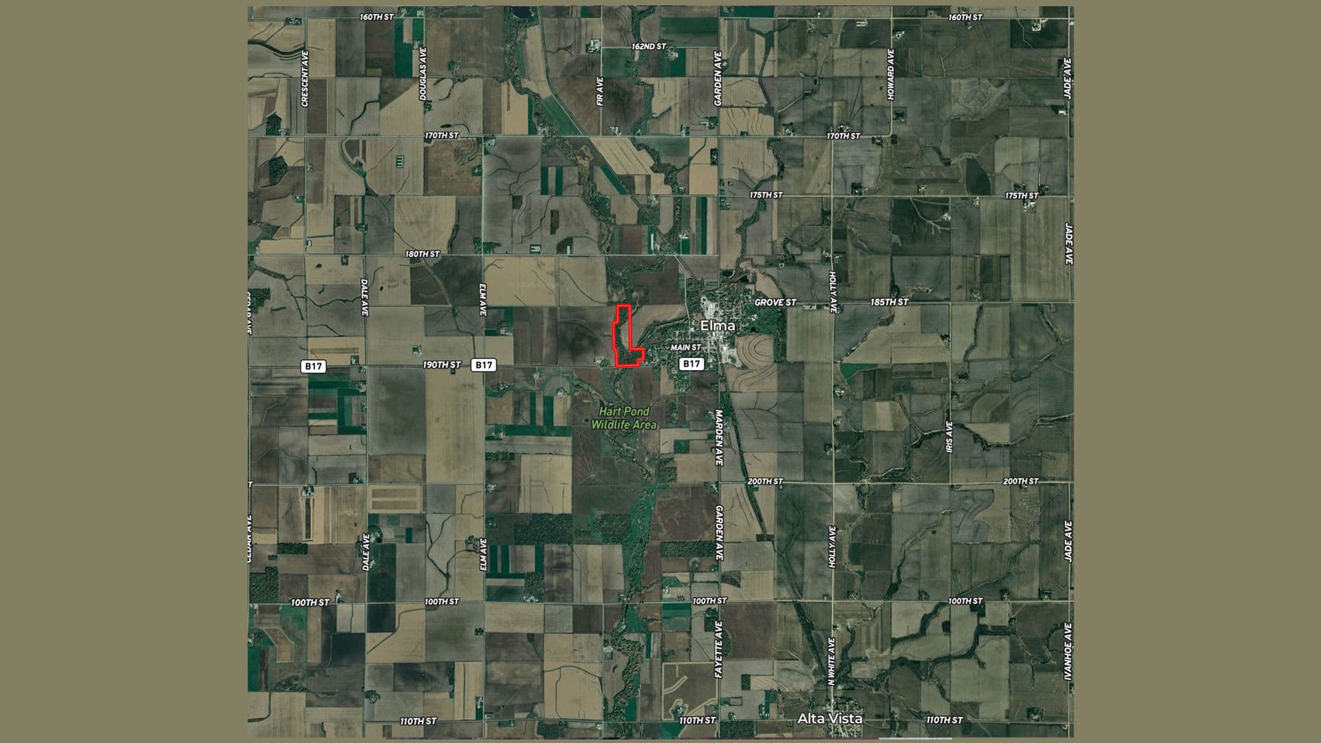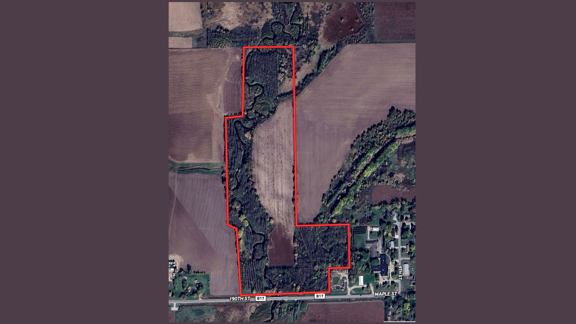 This property is located directly west of Elma in Howard County, with part of the farm inside city limits. The Little Wapsi flows through the property, providing a reliable water source for abundant wildlife. A variety of hardwoods have been planted.