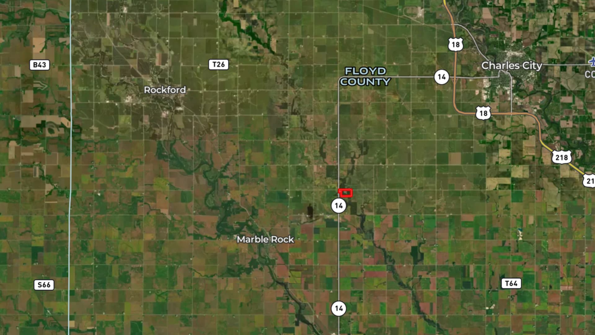 12 miles South from Charles City and 50 miles North from Cedar Falls, located on the corner of Highway 14 and 250th St, with only ¼ mile of gravel.